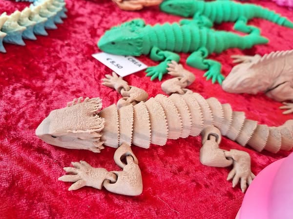 Een 3D-geprinte baardagaam is geen echt dier, maar een decoratief object dat lijkt op een baardagaam.